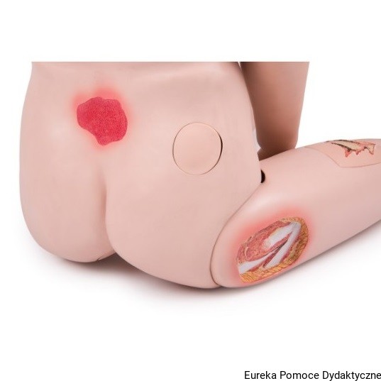 Model do nauki leczenia odleżyn z nowym elastycznym i realistycznym materiałem imitującym powłokę skórną.