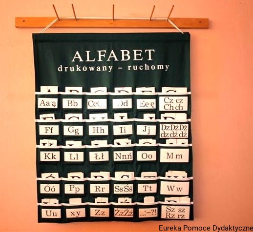 Na odwrocie kartoników z poszczególnymi literami umieszczono "rzep" lub magnes dzięki czemu w łatwy sposób można je umieszczać na tablicy welurowej lub magnetycznej. Z liter można układać wyrazy oraz zdania, a dzięki "rzepom" pomoc jest bezpieczna i funkcjonalna.