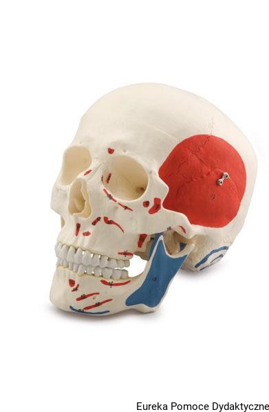 Czaszka z malowaniem przyczepów mięśni i numeracją kości, 3-częściowa.