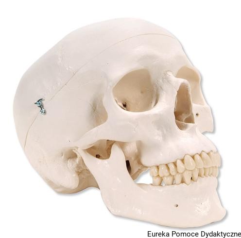 Jest to wysokiej jakości 3 - częściowa replika czaszki idealna do badań anatomicznych.