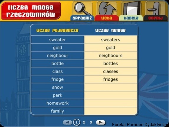 - Części zdania i rzeczowniki – występowanie części w zdaniu, liczba mnoga