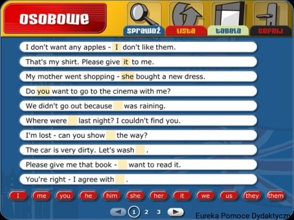 Didakta – Język angielski 1, to multimedialny program edukacyjny, który służy do przećwiczenia i sprawdzenia wiadomości, jak i do doskonalenia języka angielskiego na poziomie szkoły podstawowej.