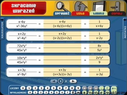 - Ułamki algebraiczne – upraszczanie wyrażenia, dodawanie i odejmowanie, mnożenie i dzielenie