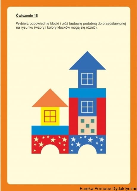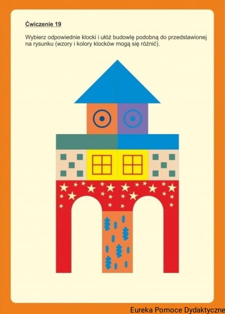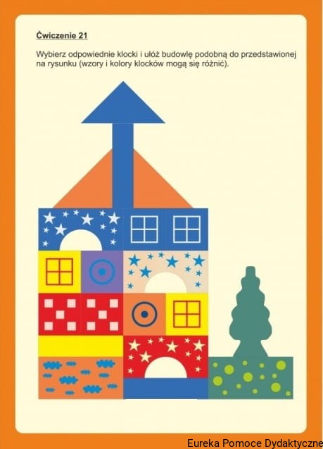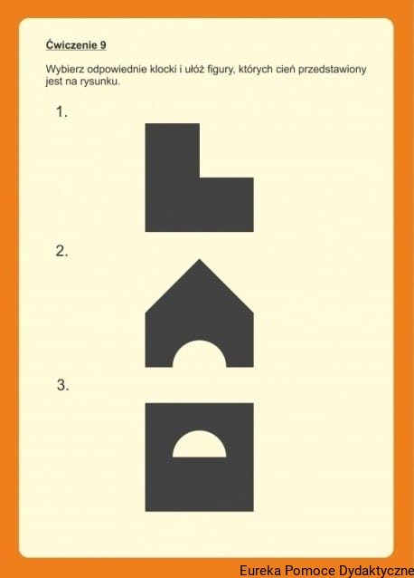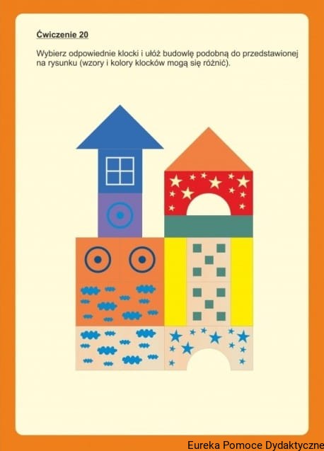 - 20 kolorowych plansz z wzorcami do układania kolorowych budowli oraz cieni