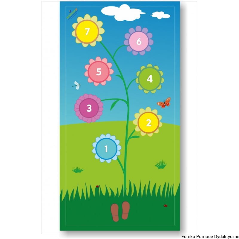 Duża mata edukacyjna - Kwiaty przygotowana jest z myślą o rozwoju umiejętności poznawczych dziecka, doskonaleniu pojęcia liczby i cyfry oraz umiejętności nazywania i rozróżniania kolorów. Zgodnie z nową podstawą programową wychowania przedszkolnego dziecko przygotowane do podjęcia nauki w szkole klasyfikuje przedmioty według wielkości, kształtu, koloru i przeznaczenia.