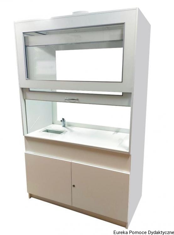 Dygestorium laboratoryjne nr 3 wersja wzbogacona przeznaczone jest do realizacji podstawowych doświadczeń z przedmiotu fizyka-chemia w szkole podstawowej i ponadpodstawowej, ale znajduje również zastosowanie w uczelniach oraz firmach badawczych. Nauczyciel dokonuje prezentacji ćwiczenia przebywając z uczniami w pracowni. Z jednej strony dygestorium znajduje się przesuwana okiennica, z drugiej strony szyba umożliwiająca oglądanie doświadczenia.