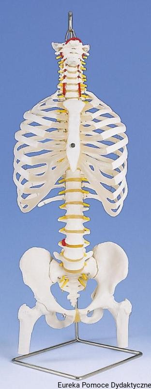 Elastyczny kręgosłup z żebrami, miednicą i kikutami udowymi.