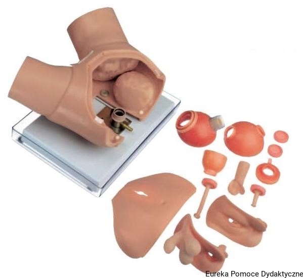 2. Zewnętrzne żeńskie genitalia z cewką moczową i połączeniem z pęcherzem. Kapsuła prostaty może zostać wypełniona naturalnym lub syntetycznym materiałem. Pęcherz jest rozdzielony i połączony razem z pierścieniem uszczelniającym.