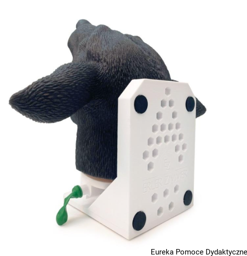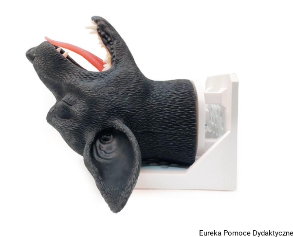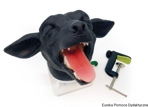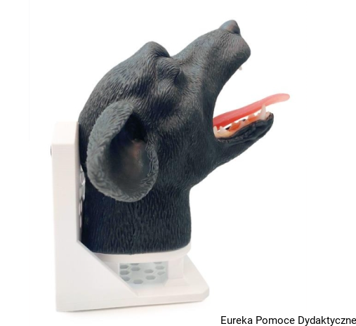 Model psa posiada elastyczny język, odwzorowaną nagłośnię i podniebienie miękkie oraz zęby wykonane z twardego tworzywa sztucznego. Użycie odpornego materiału do produkcji zębów pozwala ćwiczącym na założenie rozwieracza.