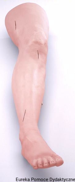 Model nogi wykonany z miękkiej elastycznej warstwy skórnej nałożonej na piankowy rdzeń zapewnia realistyczne doświadczenia zakładania szwów.