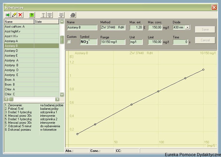 Pamięć metodyk: do 150 oznaczeń (krzywe kalibracyjne oraz szczegółowe metodyki wykonywania oznaczeń)