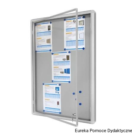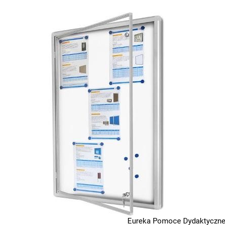 Gablota ogłoszeniowa GO 70 x 100 cm wykonana z bezpiecznego szkła akrylowego. Rama gabloty aluminiowa anodowana w kolorze srebrnym, narożniki plastikowe. Drzwi uchylne zamykane na zamek patentowy.