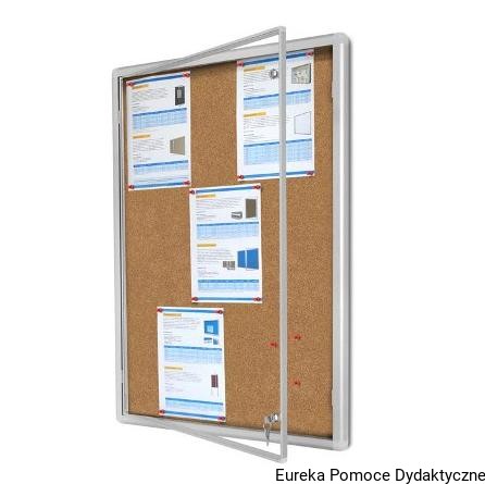 Gablota ogłoszeniowa GMR 60 x 90 cm wykonana z bezpiecznego szkła akrylowego. Rama gabloty aluminiowa anodowana w kolorze srebrnym, narożniki plastikowe. Drzwi uchylne zamykane na dwa zamki.