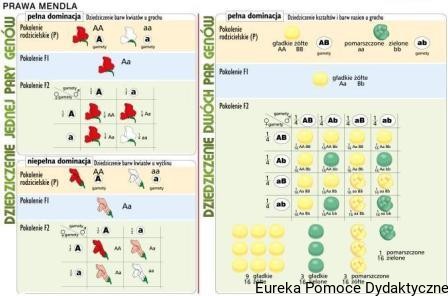 Tablice umożliwiają także zapoznanie słuchaczy z podstawowymi prawami dziedziczenia (I i II prawo Mendla).
