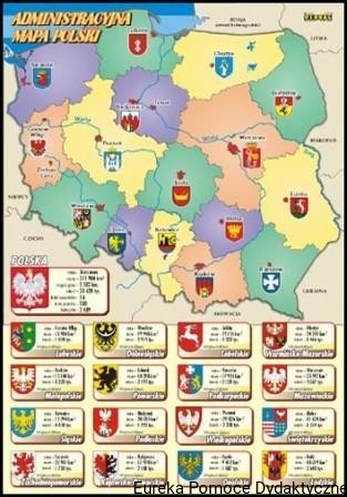 11. Mapa administracyjna Polski z herbami miast i województw