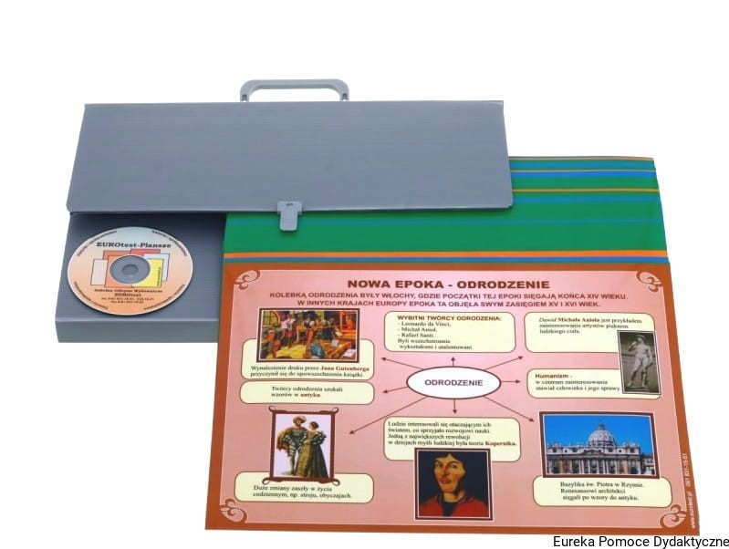 - 60 kolorowych, obustronnie zafoliowanych, sztywnych plansz poglądowych w formacie A-3;