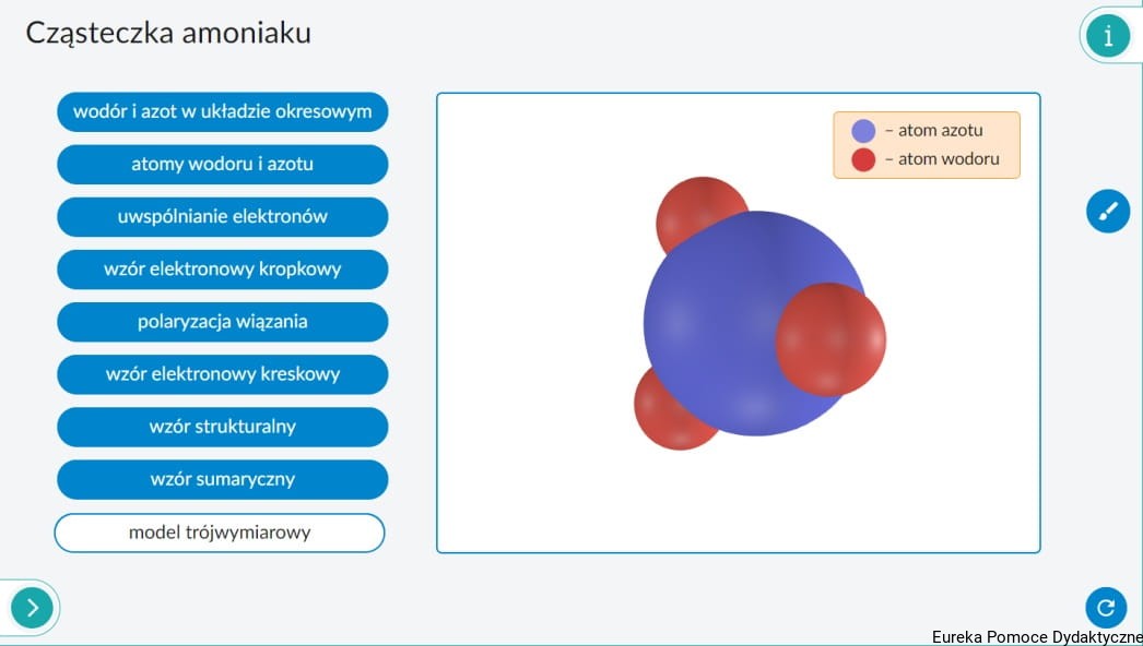 - trójwymiarowe, obracalne modele cząsteczek