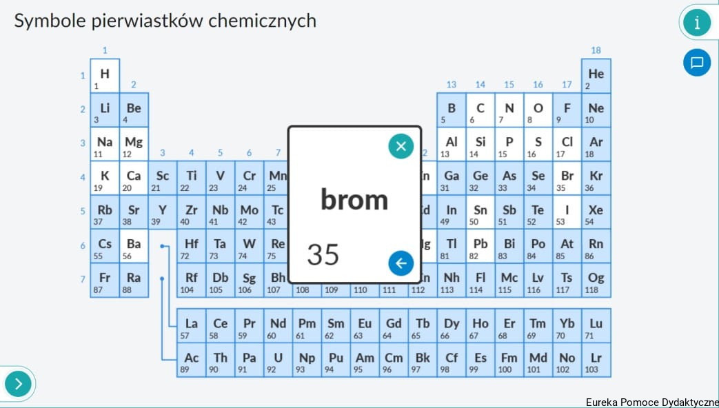 - interaktywne zasoby oparte m.in. na układzie okresowym pierwiastków chemicznych, schematach, modelach, wzorach i ilustracjach