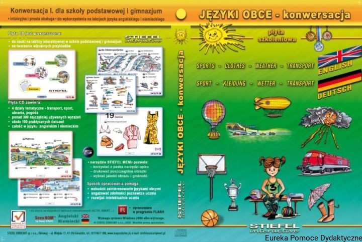 "Języki obce - konwersacja", to program interaktywny przeznaczony dla klas 4-6 szkoły podstawowej i gimnazjum do wykorzystania na lekcjach języka angielskiego i niemieckiego.