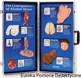 Model przedstawia skutki nadużywania alkoholu na naturalnej wielkości narządach ciała.Każdy model zamontowany na stałe w walizce zawiera szczegółowy komunikat z przesłaniem o istocie dbania o własny stan zdrowia.