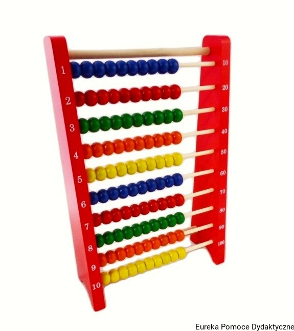 Oryginalne liczydło stojące z dużymi koralami pozwala ćwiczyć liczenie i wykonywać działania arytmetyczne w zakresie 100.
