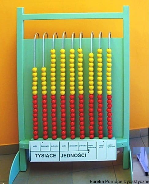 Druga strona liczydła pozwala na wykonanie ćwiczeń w tysiącach i jednościach do 3 miejsc po przecinku.