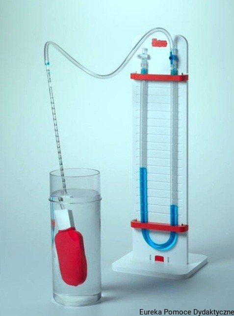 Zestaw zawiera prosty, a zarazem solidny miernik ciśnienia, tzw. manometr. Miernik ma kształt litery U, a w jego wnętrzu znajduje się barwiona ciecz.