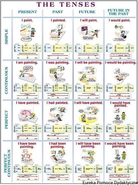 Na rewersie znajduje się tabela czasów angielskich w stronie czynnej.