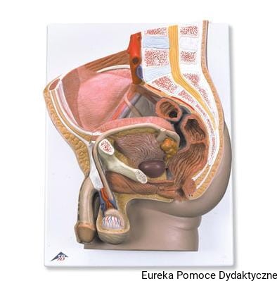 - widoczne narządy płciowe męskie wewnętrzne i zewnętrzne, pęcherz moczowy, zdejmowalna część modelu uwidaczniająca szczegóły anatomiczne