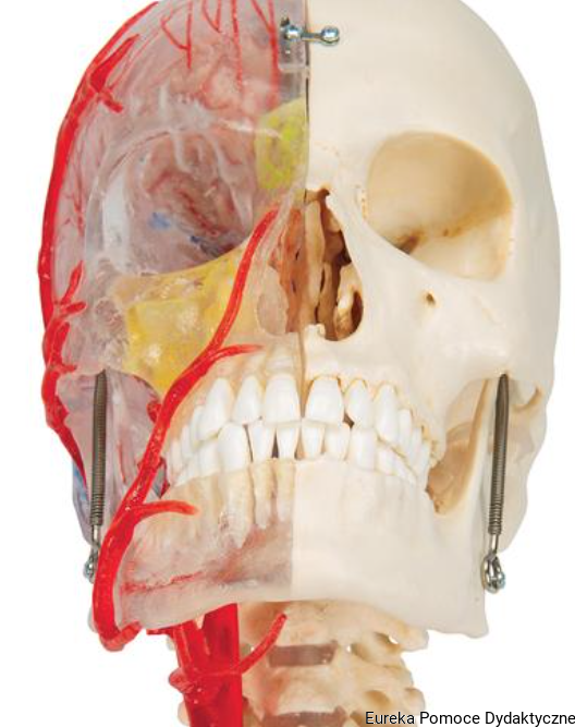 - Stomatologia w praktyce: przezroczysta szczęka ukazuje korzenie zębów i kieszonki dziąsłowe, a elastycznie zamocowana żuchwa pozwala na symulację ruchów żucia.