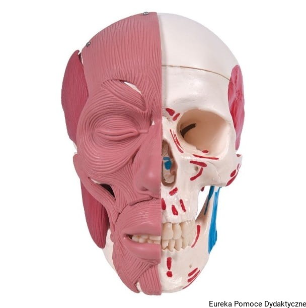 Profesjonalny model czaszki z mięśniami twarzy.