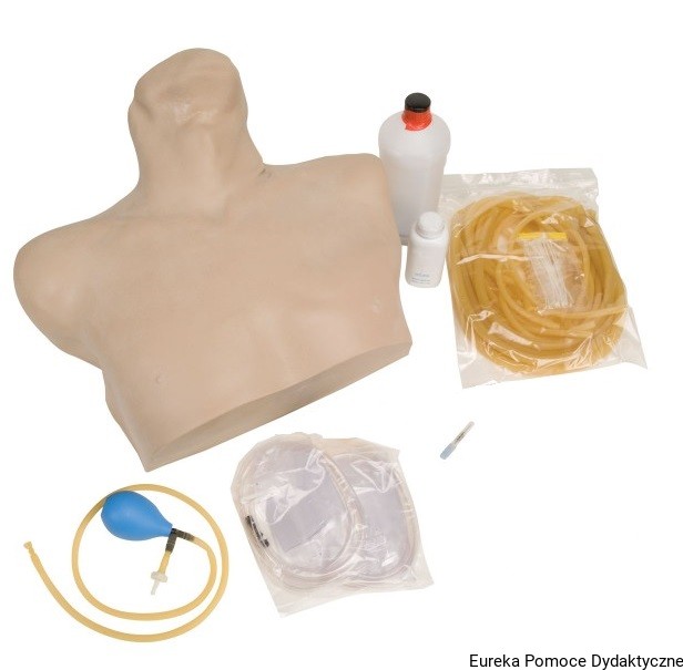 Model jest dostarczany z zamienną skórą, materiałem uszczelniającym rurki, igłami, sztuczną krwią i torbą ochronną.