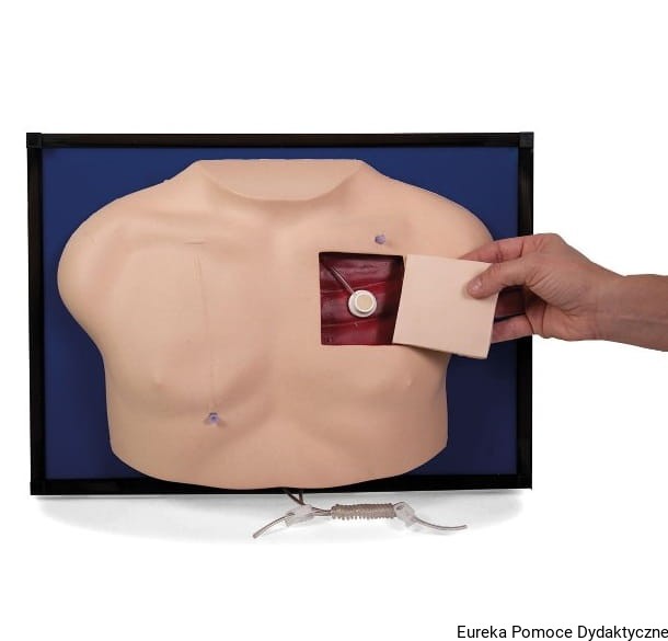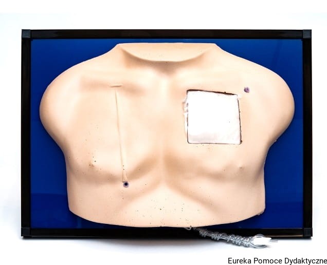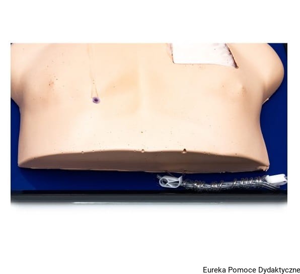 Model służy do nauki pacjentów oraz pracowników ochrony zdrowia, obsługi i pielęgnacji dwóch różnych typów cewniów centralnych. Model dostarczany w walizce ochronnej.