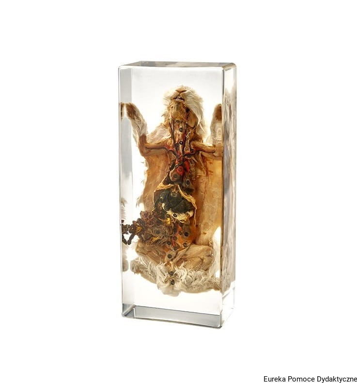 Model przedstawia preparowane ciało królika po sekcji zatopione w akrylu.