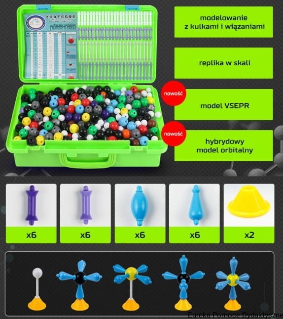 - duże barwne kule imitujące atomy, średnica ok. 3 cm - 464 szt.