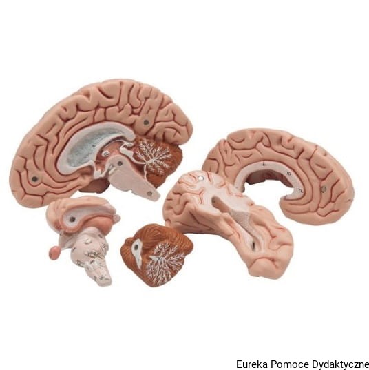 – model 5-częściowy (1 półkula w całości, druga półkula w 4 częściach: płat czołowy i ciemieniowy, płat skroniowy i potyliczny, pień mózgowia, móżdżek)