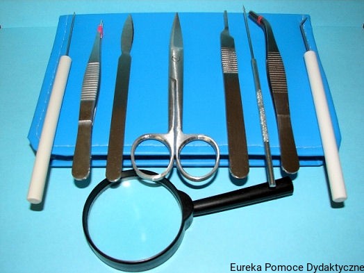 Zestaw profesjonalnych narzędzi przeznaczonych do przygotowywania preparatów biologicznych.