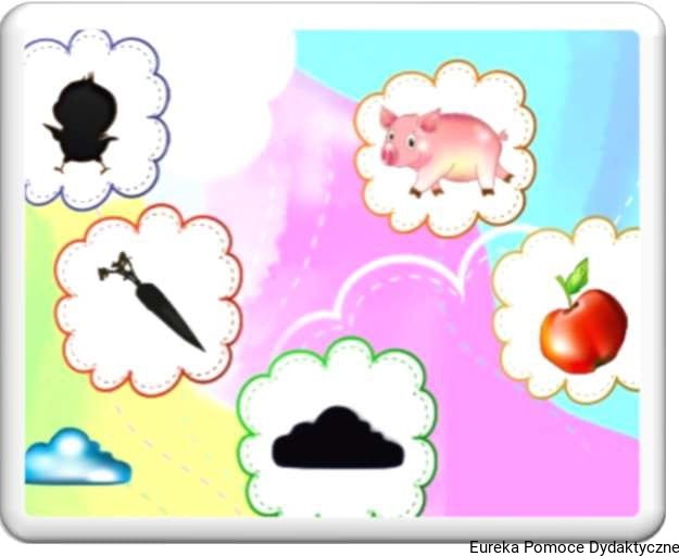 Na planszy znajdują się cienie obrazków w różnych kształtach. Gra polega na odszukaniu i dopasowaniu wybranego cienia do kolorowego obrazka, który pojawia się na planszy.