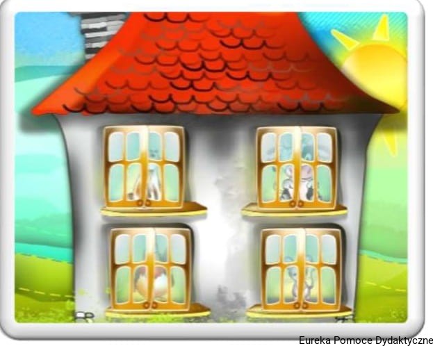 Na planszy znajduje się domek z zamkniętymi oknami, za którymi ukryte jest zwierzątko. W pewnym momencie słyszymy odgłos któregoś z nich. Zadanie polega na wskazaniu zwierzątka, które wydało odgłos.