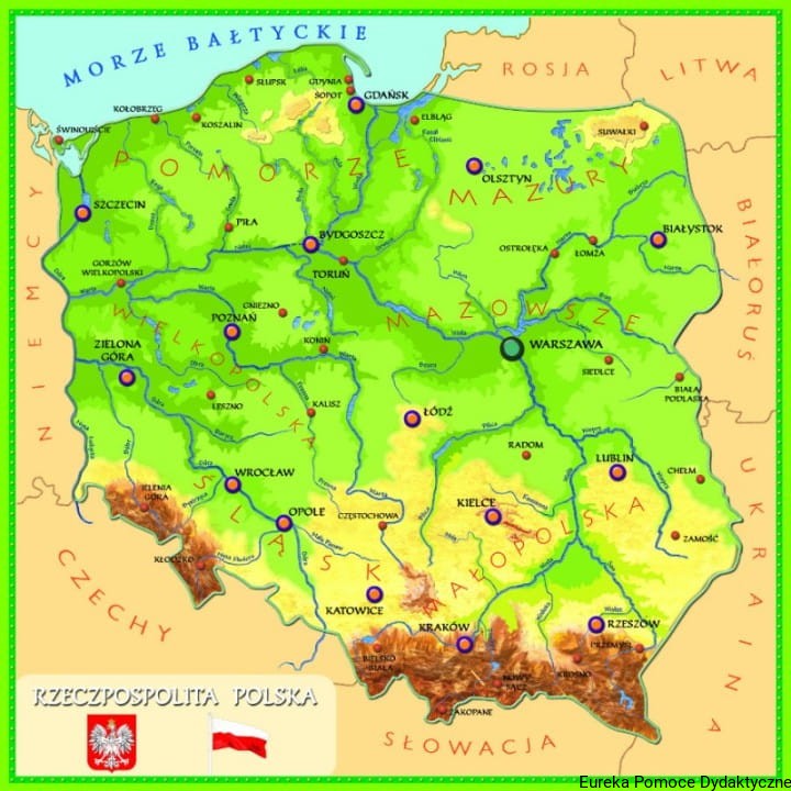 Kolorowa, obrazkowa mapa Polski dla dzieci jest pomocą edukacyjną umożliwiającą dziecku zrozumienie otaczającego świata.