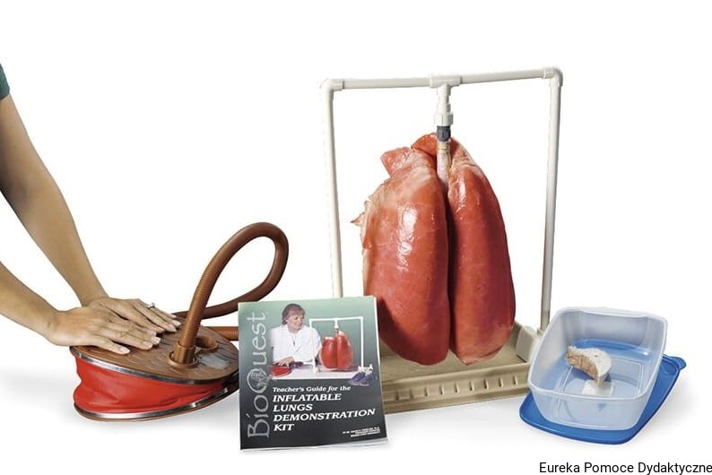 Zestaw dostarczany z pompką i dodatkowym przekrojem płuc przedstawiających budowę wewnętrzną.