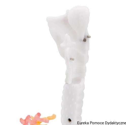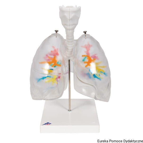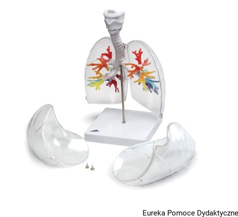 Krtań z kością gnykową, nagłośnią, tchawicą i płatami oskrzelowymi przedstawione są w jednym kolorze. Krtań jest demontowalna, a na poziomie drugiej chrząstki tchawicy i podzielana w przekroju środkowym. Nagłośnia jest zamocowana w sposób ruchomy. Poszczególne segmenty oskrzeli są wykonane z materiału elastycznego i lekko przezroczystego oznaczonego różnymi kolorami.