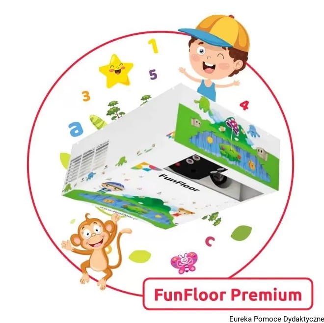 Profesjonalny zestaw interaktywnej podłogi z jasnym projektorem o mocy 5000 ANSI. Posiada 50 gier z Pakietu Fun, 50 gier z pakietu edukacyjnego, 10 gier z Pakietu Ekologia, 12 gier z Pakietu Rozwój Mózgu oraz 10 gier z Pakietu Kodowanie. FunFloor Premium został wzbogacony również o 100 gier z pakietu do nauki języka angielskiego. Istnieje możliwość zainstalowania dodatkowych pakietów gier oraz zamówienie pisaków interaktywnych, które również są obsługiwane w tej wersji.