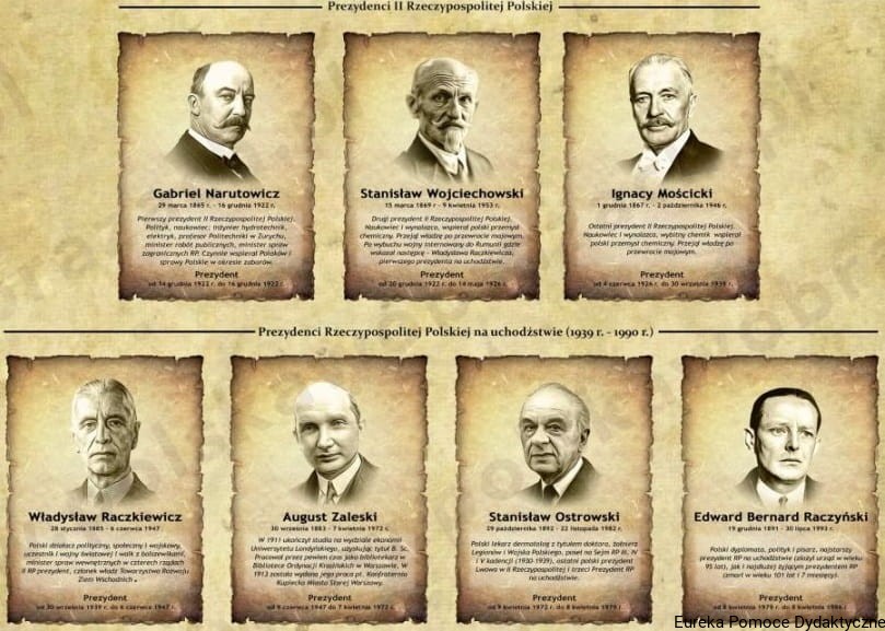Polska - symbole narodowe, Prezydenci - plansza dydaktyczna 140 x 100 cm
