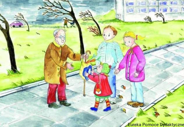 Pomoc zawiera 12 historyjek obrazkowych omawiających problematykę bezpieczeństwa dzieci.