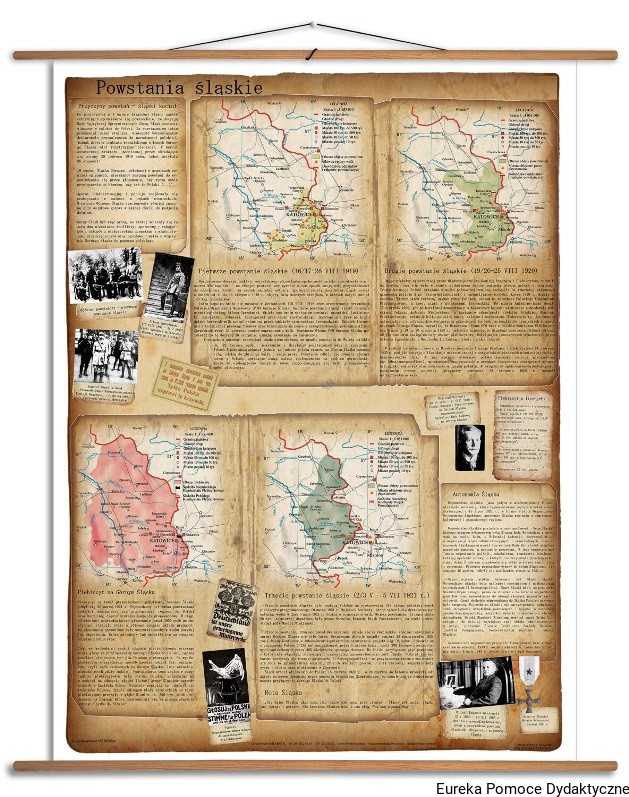 Mapa przedstawiająca w przystępny i czytelny sposób skomplikowany etap kształtowania się II Rzeczpospolitej oraz przynależności państwowej Górnego Śląska. Mapa podzielona jest na cztery części poświęcone kolejnym trzem powstaniom śląskim oraz plebiscytowi na Górnym Śląsku. Wydarzenia te miały ogromne znaczenie dla historii polskiego XX-lecia międzywojennego, zarówno w aspektach politycznych, jak i gospodarczych. Osobna część omawia kwestie autonomii śląskiej. Mapa wzbogacona jest opisami poszczególnych zagadnień, a także bogatym materiałem fotograficznym oraz ilustracyjnym.