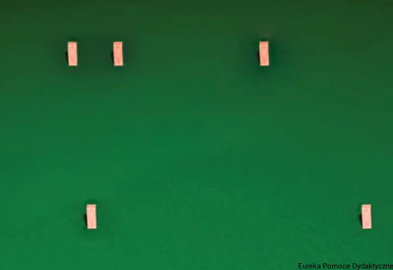 - Slalom z ograniczeniem – uczy poruszania się w wąskich przestrzeniach.