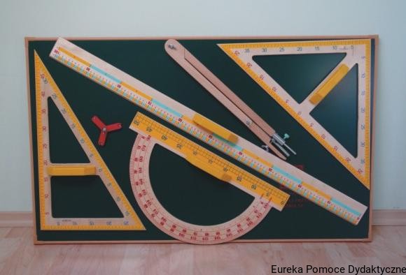 Przybory matematyczne drewniane magnetyczne na tablicy magnetycznej