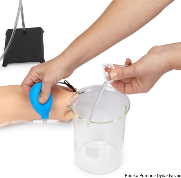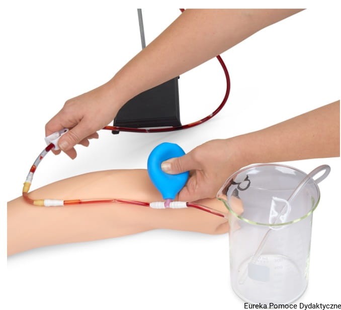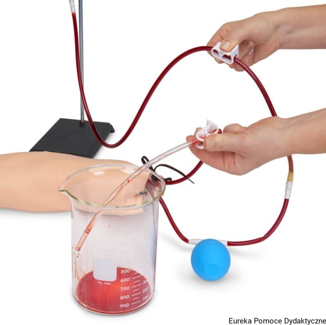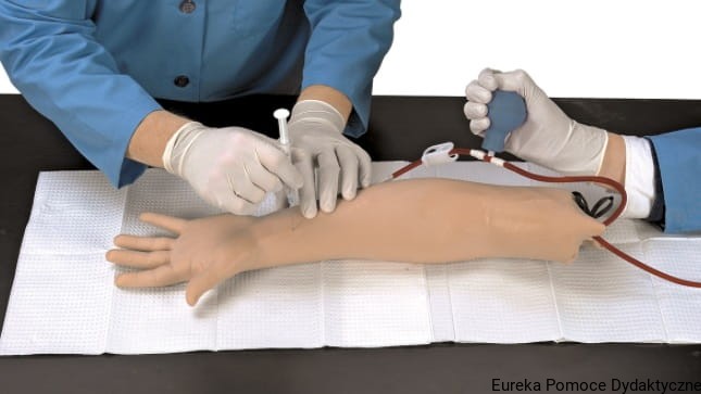 Model pomocny w nauce pobrania próbki krwi i analizy gazów krwi. Miejsce punkcji znajduje się na tętnicy promieniowej i ramiennej.