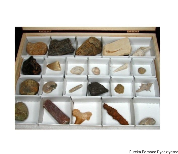 Profesjonalny zestaw dydaktyczny skamieniałości.